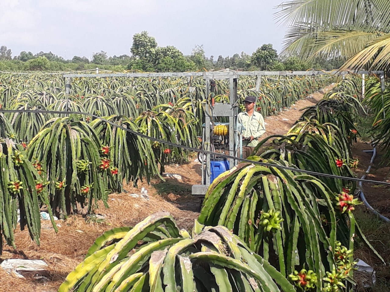 Huỳnh Công Can (SN 1994) - hội viên Chi hội Nông dân khu phố An Hòa 3, thị trấn Thủ Thừa, huyện Thủ Thừa, sáng chế máy phun thuốc đa năng cho cây thanh long, mang lại nhiều lợi ích cho nông dân.