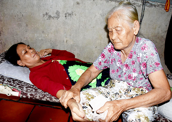 Cụ Lê Thị Trúc đang chăm sóc con gái.