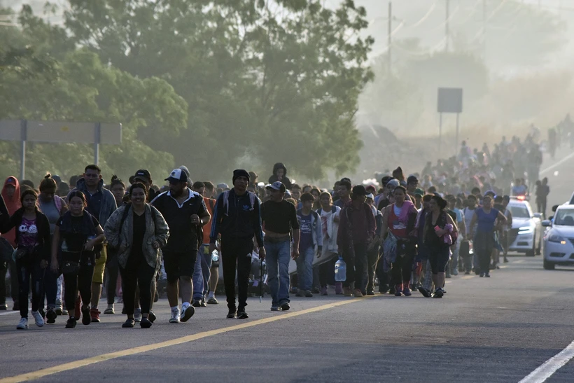 Người di cư từ bang Chiapas, Mexico tuần hành tới khu vực biên giới với Mỹ, ngày 8/1/2024. (Ảnh: AFP/TTXVN)