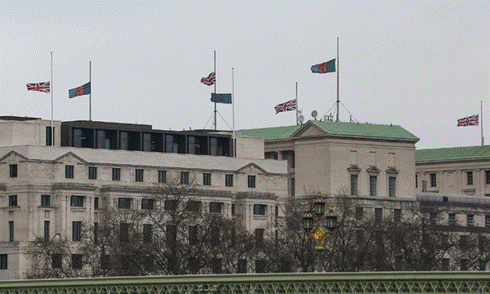 Trụ sở MI5 treo cờ rủ sau vụ tấn công ở London ngày 22/3/2017. Ảnh: Dinendra Haria/Rex/Shutterstock