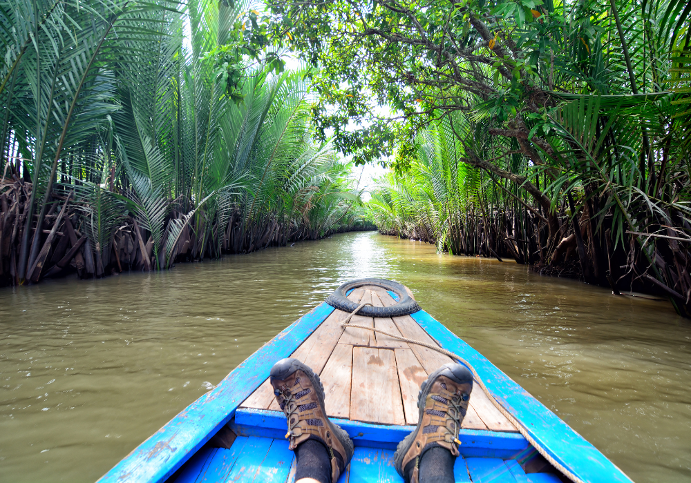 Dòng sông mênh mang sóng. Những cụm lục bình thủy sinh chấp nhận nổi trôi, một đời bám rễ vào sông. Tàu du lịch dập dìu, qua lại mấy lần trên đoạn sông này để du khách tận mắt chứng kiến cảnh mua bán dập dìu trên sông, ăn sáng cũng trên sông, tắm giặt trên sông, các hoạt động văn hóa, văn nghệ cũng diễn ra trên sông để chiều lòng du khách. Từ chiếc bè nổi đậu cạnh bờ, âm thanh tiếng đàn tranh, đàn nguyệt vang ra khắp dòng sông như giai điệu gọi mời khách tứ phương về với vùng sông nước hữu tình, thơ mộng.