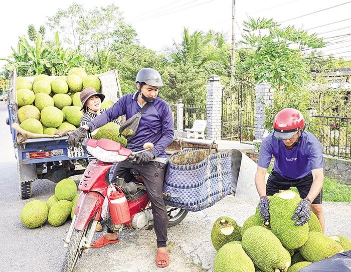 Thương lái thu mua mít Thái tại huyện Chợ Lách, tỉnh Bến Tre.