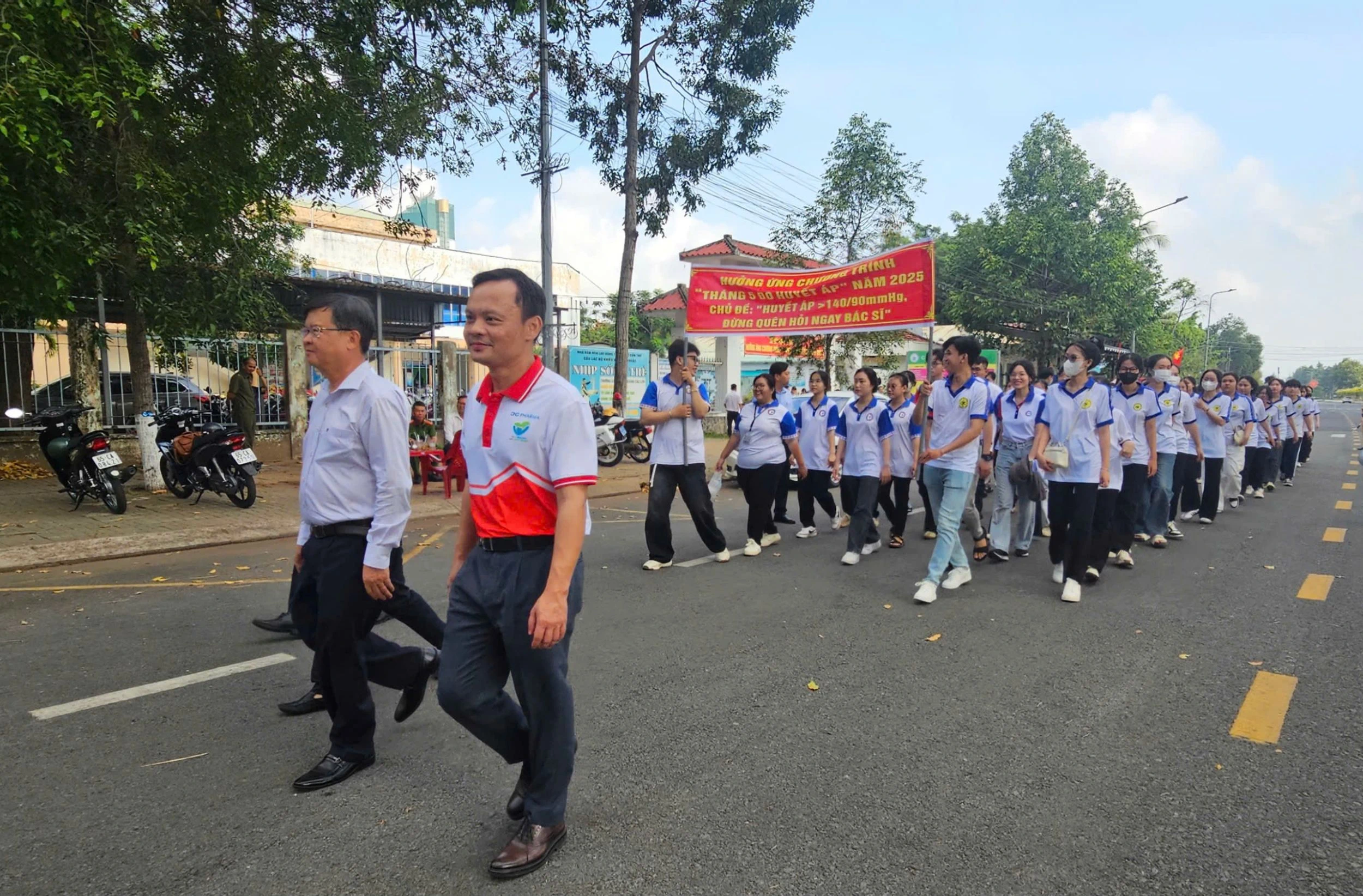 Ông Hoàng Quốc Cường, Giám đốc Sở Y tế TP Cần Thơ cùng các đại biểu đi bộ diễu hành cổ động hưởng ứng Chương trình “Tháng 5 đo huyết áp” năm 2025 với thông điệp “Ăn uống lành mạnh - Vận động đều - Kiểm soát huyết áp tốt”.