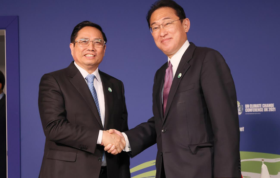 | Thủ tướng Kishida Fumio và Thủ tướng Phạm Minh Chính tại cuộc gặp bên lề COP 26 (Ảnh:Twitter Thủ tướng Kishida Fumio) |
