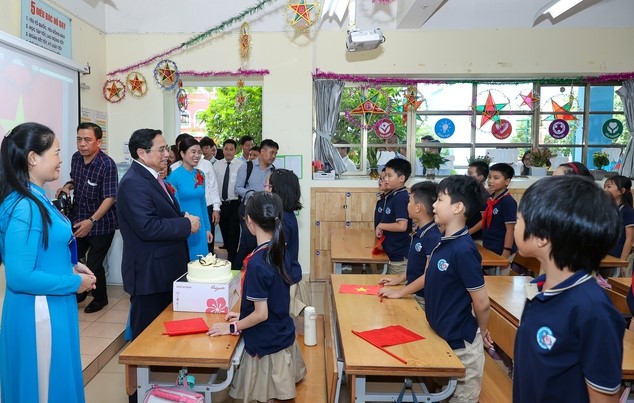 | Ngay sau khi dự lễ khai giảng tại Trường Tiểu học Đoàn Thị Điểm (quận Nam Từ Liêm, Hà Nội), Thủ tướng Phạm Minh Chính đã đi thăm cơ sở vật chất của nhà trường. Ảnh: Nhật Bắc |