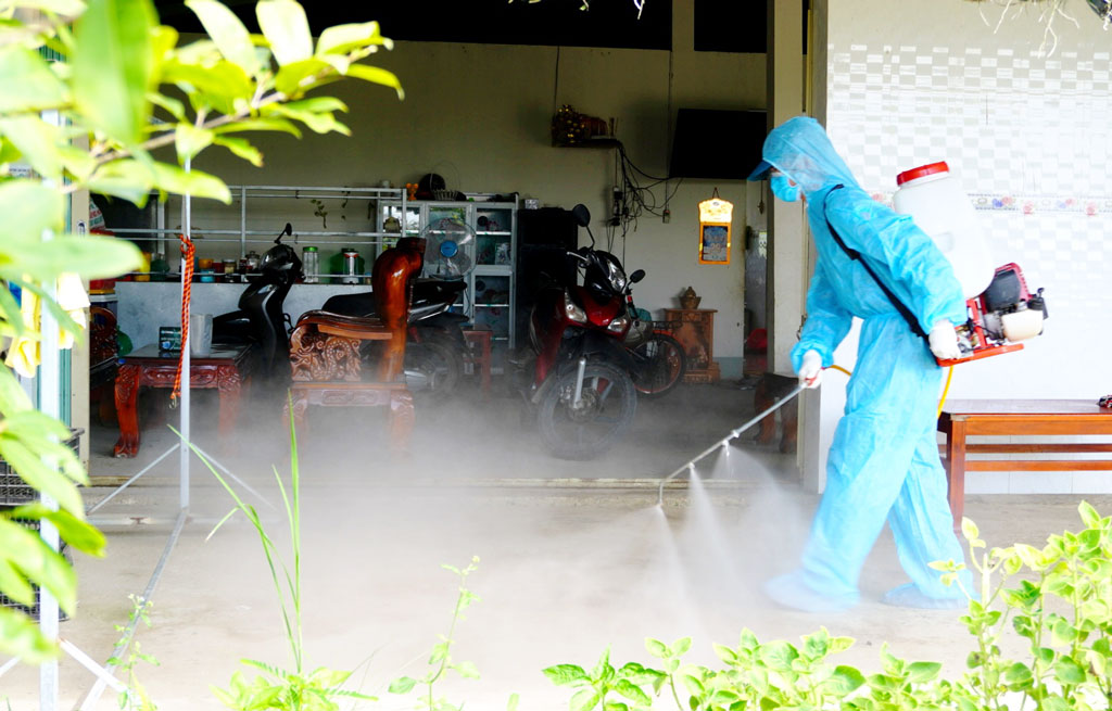 Cán bộ y tế phun khử khuẩn sau khi kết thúc khu vực khoanh vùng