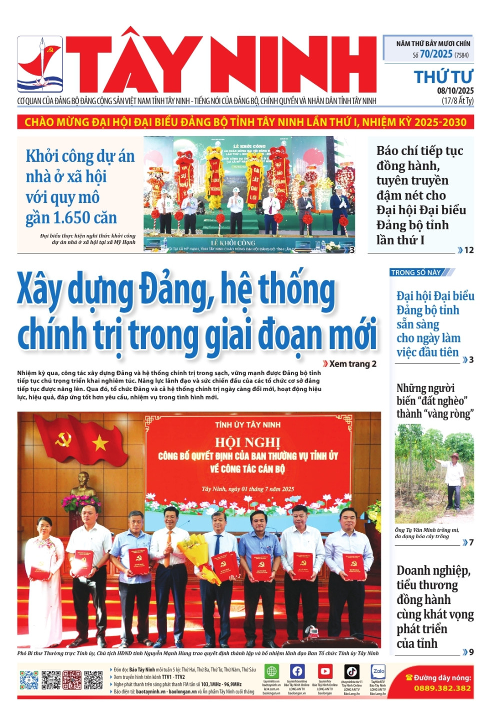 Mời độc giả đón đọc Báo Tây Ninh số 70/2025, phát hành ngày 08/10