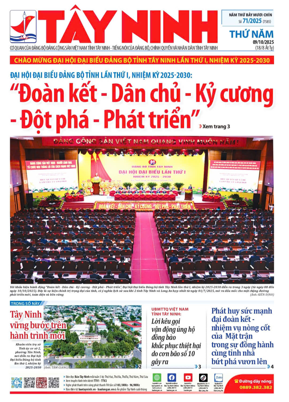Mời độc giả đón đọc Báo Tây Ninh số 71/2025, phát hành ngày 09/10