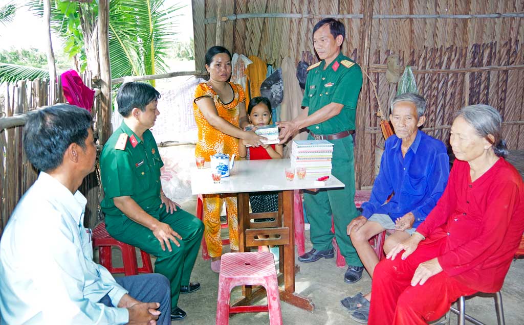 Ban Chỉ huy Quân sự huyện Cần Giuộc giúp đỡ em Hồ Thị Hiếu đến trường từ nguồn quỹ “Mỗi ngày 2.000 đồng giúp trẻ em nghèo hiếu học”