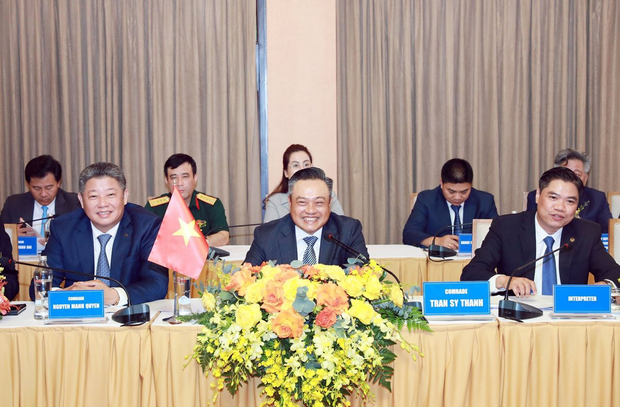 Chủ tịch UBND thành Hà Nội vui mừng chia sẻ, thời gian gần đây, hai bên thường xuyên có sự trao đổi trên tất cả các lĩnh vực, hợp tác hiệu quả và thực chất thông qua các hoạt động ở các cấp. Tuy nhiên, đồng chí Trần Sỹ Thanh cho rằng, hiện nay, hai bên chưa có nghiên cứu trao đổi cụ thể về một số lĩnh vực, như: chuyển đổi số, chính quyền điện tử, quản lý không gian mạng, phòng chống tội phạm trên không gian mạng… Chủ tịch UBND thành phố Hà Nội Trần Sỹ Thanh cho rằng, hai bên cần thúc đẩy hợp tác, chia sẻ trên những lĩnh vực này, đồng thời thống nhất trên nguyên tắc để có hình thức phối hợp ở các sở, ban, ngành nhằm nâng cao năng lực ở một số lĩnh vực công nghệ mới.