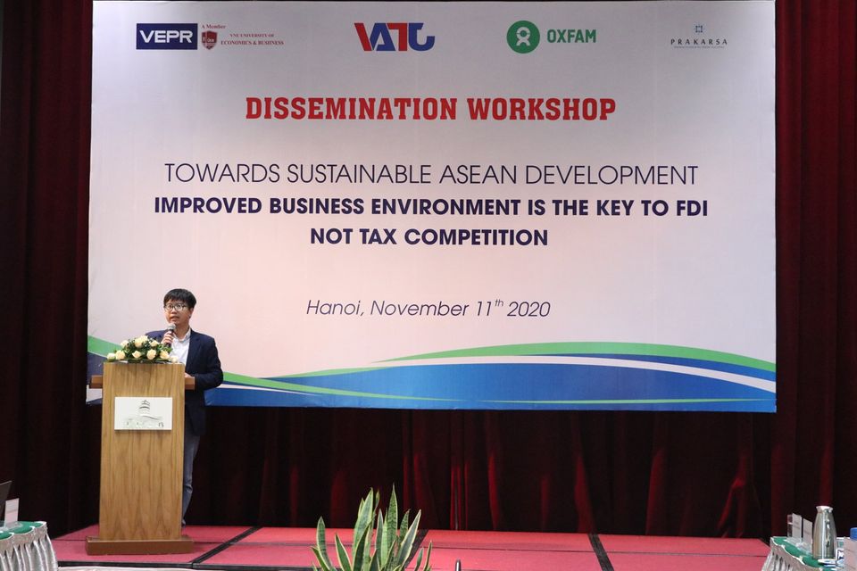 Chiều 11/11, Viện Nghiên cứu Kinh tế và Chính sách (VEPR) tổ chức Hội thảo "Hướng tới một ASEAN phát triển bền vững: Cải thiện môi trường đầu tư va ngưng cạnh tranh thuế".