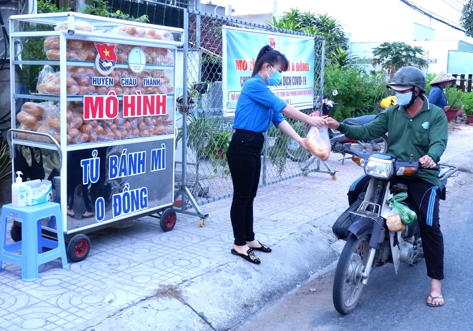 Đúng 5 giờ, tủ bánh mì 0 đồng của Đoàn Thanh niên thị trấn Tầm Vu được dọn ra. Theo Phó Bí thư Huyện đoàn Châu Thành - Nguyễn Trung Rỡ, sở dĩ tủ bánh mì được dọn ra sớm vì ở quê, người dân đi làm thanh long khá sớm. Qua đây, nhằm kịp thời trao tặng cho nông dân bữa ăn lót dạ vào buổi sáng”.