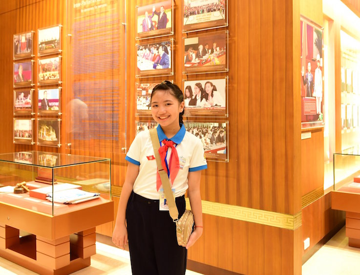 | Hà Linh tự hào là một trong số 61 đại biểu dân tộc thiểu số trong tổng số 263 đại biểu thiếu nhi đến từ nhiều vùng miền của Tổ quốc về dự phiên họp giả định "Quốc hội trẻ em" lần thứ I |