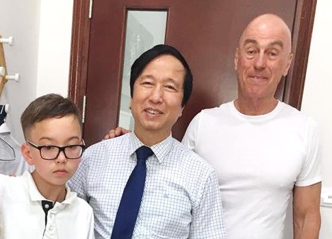 GS Nguyễn Thanh Liêm (giữa) và cha con một bệnh nhi người nước ngoài từng được ông phẫu thuật - Ảnh: NVCC
