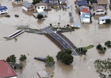 Cảnh ngập lụt do mưa lớn sau khi bão Hagibis đổ bộ vào tỉnh Nagano, miền Trung Nhật Bản ngày 13/10/2019. (Ảnh: Kyodo/TTXVN)