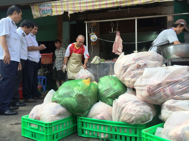 Đoàn kiểm tra đã thu giữ số thực phẩm bẩn gồm 644,4kg thịt heo các loại, 227kg xương heo không giấy chứng nhận, không rõ nguồn gốc, 107,8kg thịt gà các loại không bao bì và có dấu hiệu đổi màu xanh, không đảm bảo điều kiện vệ sinh an toàn thực phẩm. Đồng thời giấy chứng nhận điều kiện vệ sinh an toàn thực phẩm của cơ sở này đã quá thời hạn 2 năm.