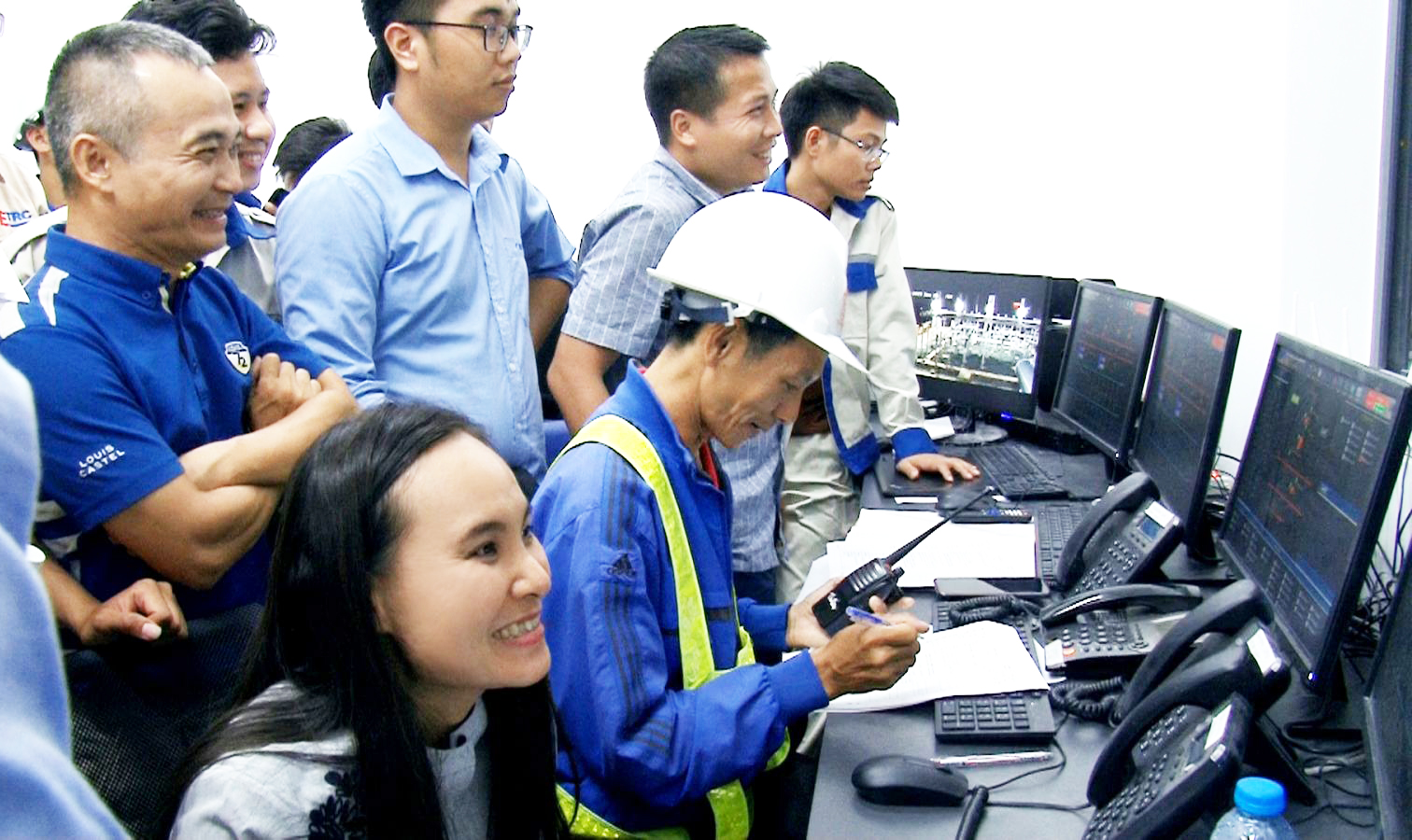 Niềm vui vỡ òa của tập thể Sao Mai Solar PV1 khi đóng điện thành công. Ảnh: QUỐC HƯNG