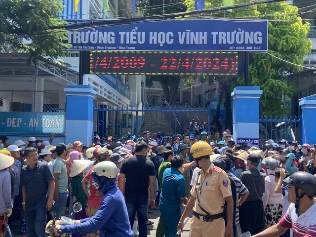 Tại hiện trường, hàng trăm người dân hiếu kỳ cùng phụ huynh của học sinh tụ tập kín Trường tiểu học Vĩnh Trường. Các lực lượng công an, dân phòng phải bắt loa tuyên truyền, hướng dẫn người dân để giữ ổn định tình hình an ninh trật tự, an toàn giao thông khu vực.