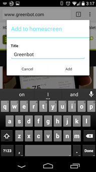 Chắc chắn bạn đã từng có không ít lần muốn lưu lại một trang web bổ ích nào đó để nhanh chóng xem lại sau. Để làm điều này trong Chrome for Android, sau khi đã mở trang web cần lưu lại, bạn nhấn nút “Menu” rồi chọn “Add to homescreen”, đặt lại tiêu đề cho dễ nhớ rồi nhấn nút “Add”. Cuối cùng, bạn sẽ có được một nút nhấn trên màn hình Home để mở ngay trang web đã lưu lại.