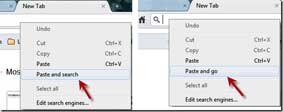 Nếu bạn sao chép bất kỳ địa chỉ (URL) nào bên ngoài Chrome và có ý định để mở một trang web trên Chrome, thay vì bạn bấm Ctrl + V để dán trên thanh địa chỉ và Enter, bạn chỉ cần nhấp chuột phải và click vào “Paste and go”. Đối với văn bản mà bạn muốn tìm kiếm bằng cách sử dụng thanh địa chỉ của Chrome, bạn nhấp chuột phải lên thanh địa chỉ và chọn “Paste and search”. Điều này tiết kiệm thời gian hơn.