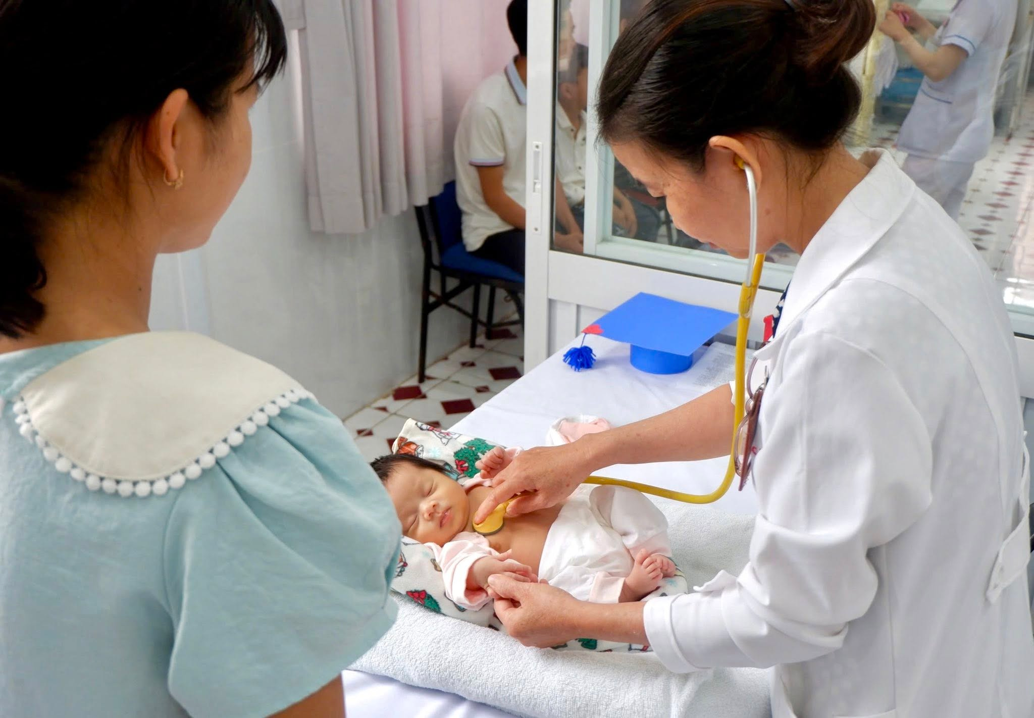 Sau gần một tháng được các bác sĩ chuyên khoa nhi - sơ sinh Bệnh viện Phụ sản TP Cần Thơ điều trị, em bé đã thoát cơn nguy kịch, vừa được xuất viện về với gia đình. Ảnh BV cung cấp.