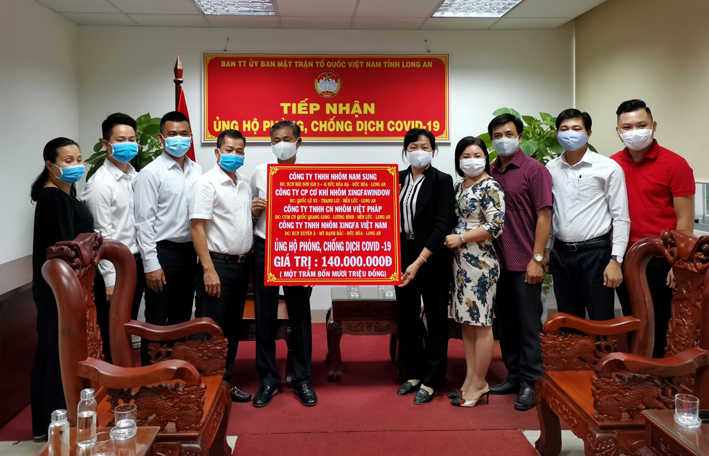 Công ty TNHH Nhôm Nam Sung, Công ty Cổ phần Cơ khí Nhôm XINGFAWINDOW, Công ty TNHH CN Nhôm Việt Pháp và Công ty TNHH Nhôm XINGFA Việt Nam ủng hộ 140 triệu đồng