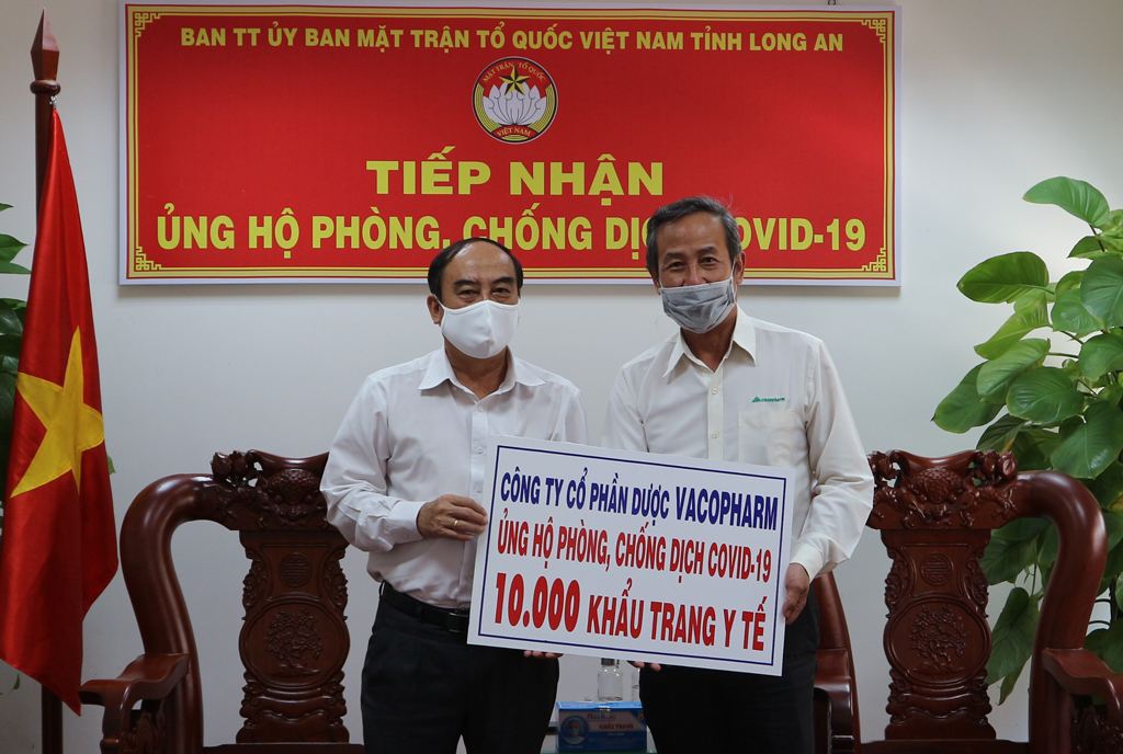 Sáng 04/3, UB.MTTQ Việt Nam tỉnh vừa tiếp nhận thêm sự ủng hộ của Công ty Cổ phần Dược phẩm VACOPHARM (TP.Tân An) gồm 10.000 khẩu trang y tế và 300 triệu đồng của Công ty Cổ phần Bất động sản SEAHOLDINGS (quận Bình Thạnh, TP.HCM).