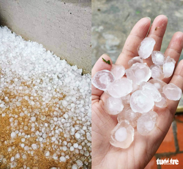 Mưa đá càng lúc càng lớn dần. Những viên đá rơi có đường kính hơn 1cm, thậm chí có viên lớn bằng ngón chân cái.