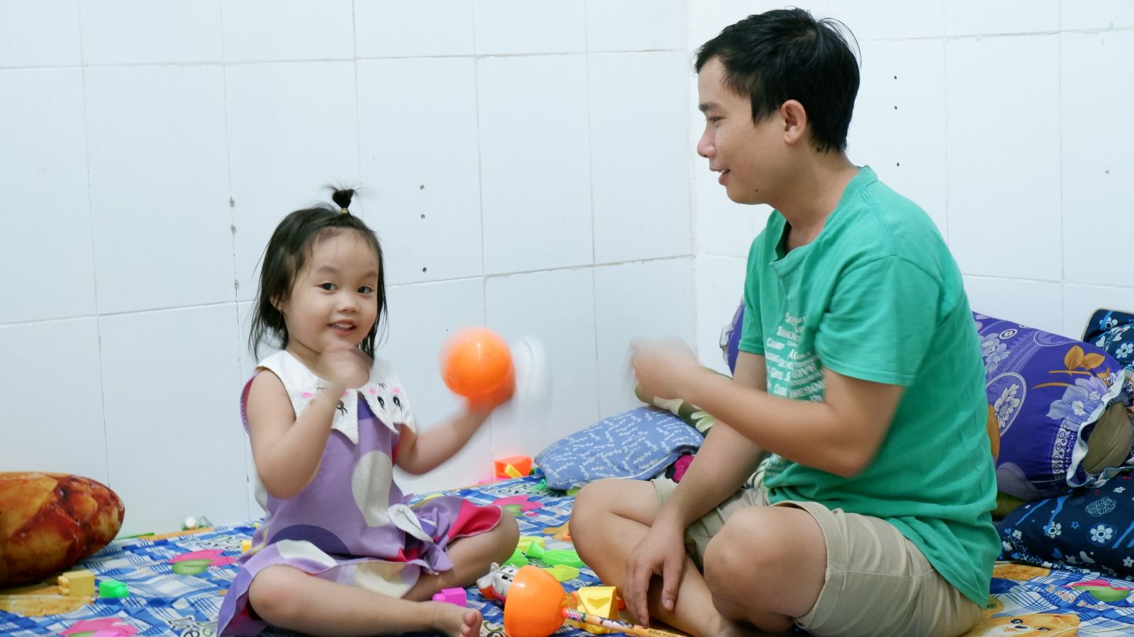 Em Hoàng Ngọc Diệp, ngụ xã Thanh Phú, huyện Bến Lức, chơi đùa cùng cha