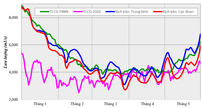 Tổng lượng dòng chảy về đến Tân Châu và Châu Đốc trong mùa khô năm 2022 (từ tháng 1/2022 đến hết tháng 5/2022) đạt khoảng 65,5 tỷ m3, gần với giá trị trung bình nhiều năm, cao hơn mùa khô 2020 khoảng 2,5 tỷ m3 và mùa khô 2021 khoảng 1,2 tỷ m3.