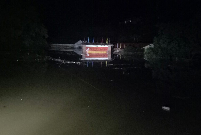| Mưa lớn tối 22/7 làm ngập cổng trường THCS thị trấn Si Ma Cai (Nguồn: baolaocai.vn) |