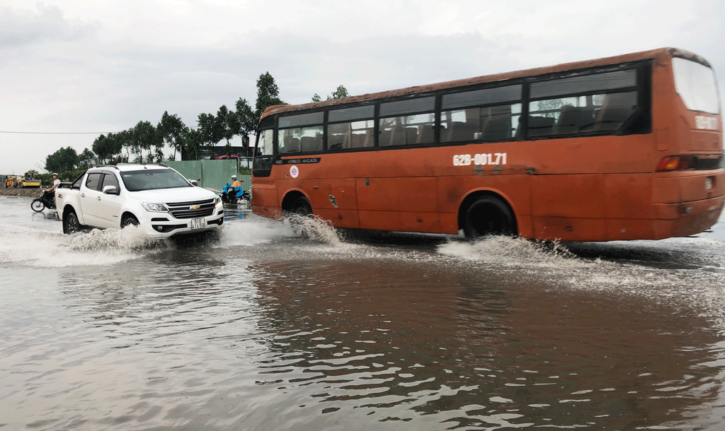 Đoạn đường bị ảnh hưởng nhiều nhất là ngã tư giao nhau giữa Quốc lộ 62 với tuyến tránh Quốc lộ 1, ngập lên gần nữa bánh xe, một số mô tô bị tắt máy.