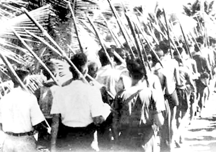 | Quân và dân Nam bộ với gậy tầm vông đứng lên chiến đấu khi thực dân Pháp xâm lược nước ta, tháng 9/1945. (Ảnh: Tư liệu) |