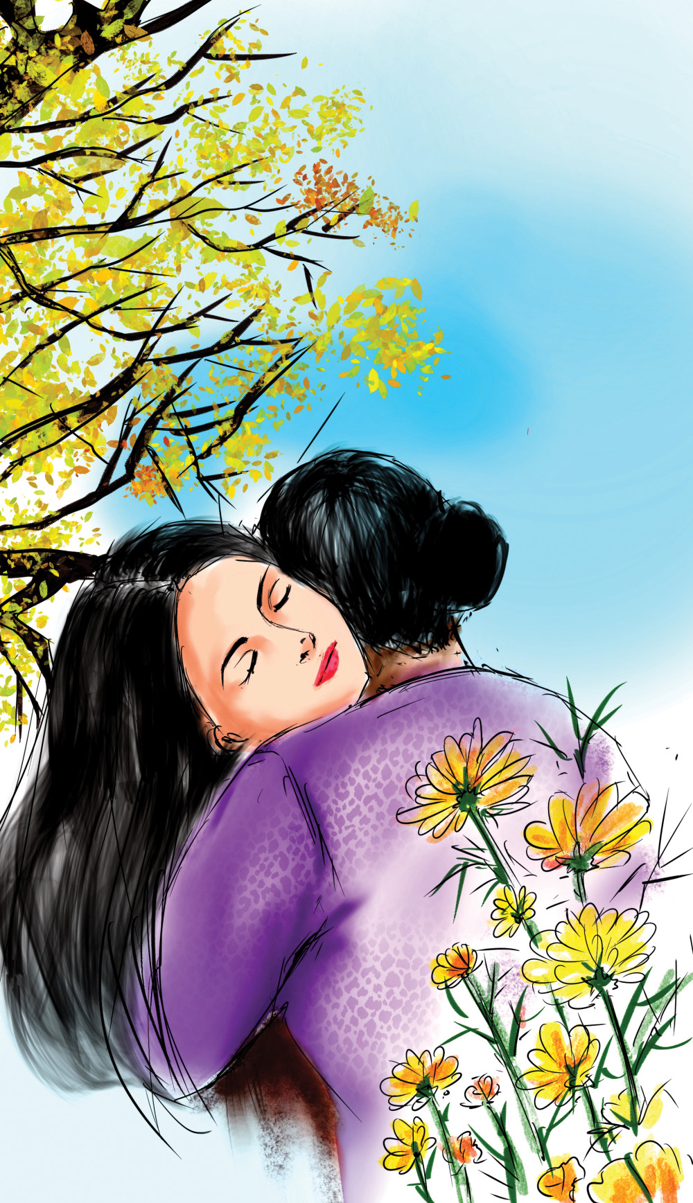 Má nghẹn ngào không nói được lời nào, chỉ ôm Ân thật chặt. Ân dụi đầu vào vai má, nghe mùi dầu gió xanh từ chiếc áo bà ba nâu má mặc qua bao mùa nắng mưa mà má không chịu bỏ. Được má ôm vào lòng, Ân thấy mình nhỏ dại. Dù Ân có đi xa, có trưởng thành, có thành công đến đâu thì trong mắt má, Ân vẫn là con gái bé bỏng, còn má vẫn luôn là bờ vai vững chắc để Ân tựa vào.