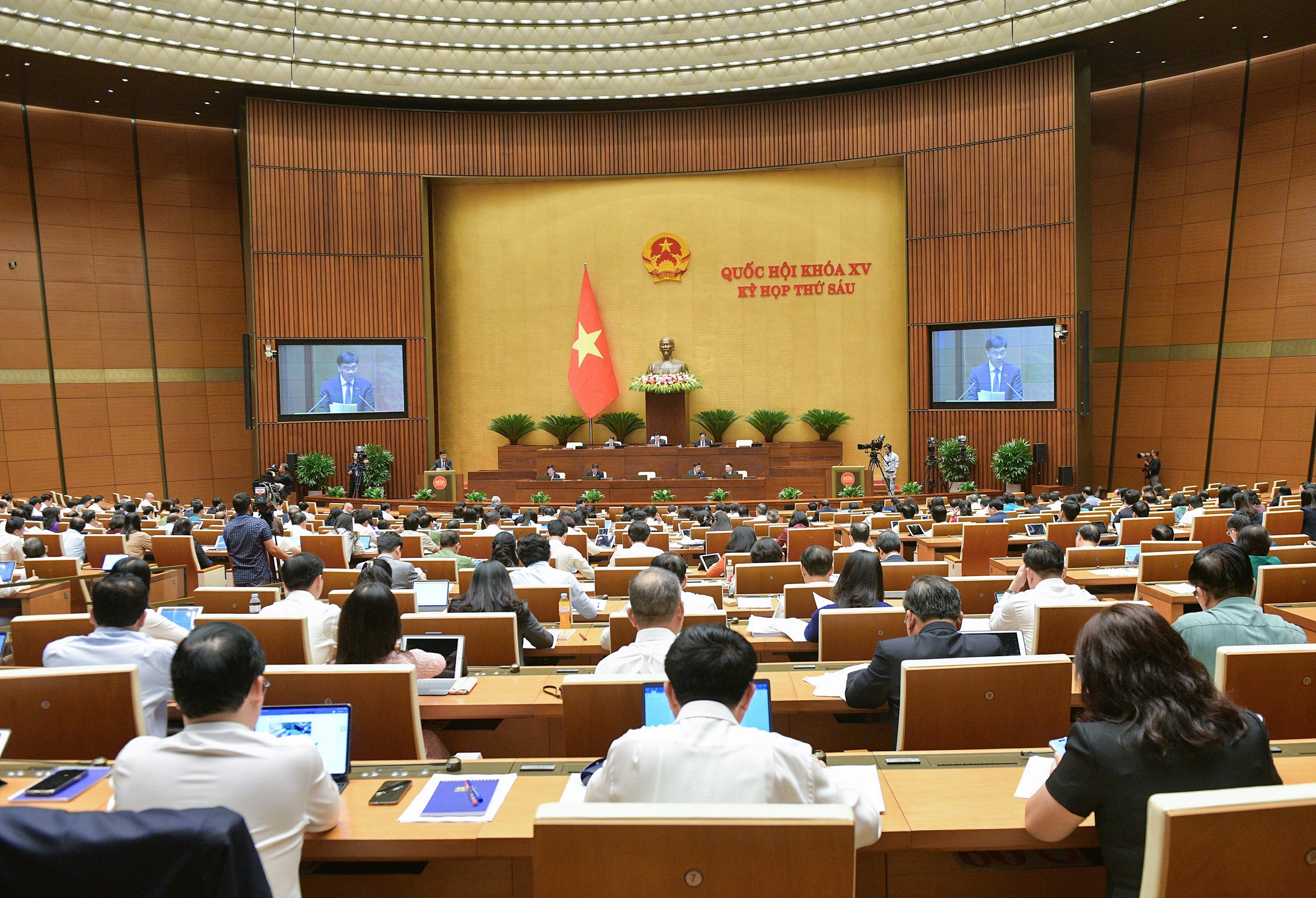 Tiếp tục Chương trình Kỳ họp thứ 6, Quốc hội khóa XV, chiều 23/10, Quốc hội nghe các báo cáo về đánh giá giữa nhiệm kỳ thực hiện Kế hoạch phát triển kinh tế - xã hội 5 năm 2021 - 2025 và Kế hoạch cơ cấu lại nền kinh tế giai đoạn 2021 - 2025; tình hình thực hiện ngân sách nhà nước năm 2023, dự toán ngân sách nhà nước, phương án phân bổ ngân sách trung ương năm 2024, Kế hoạch tài chính - ngân sách nhà nước 03 năm 2024 - 2026; đánh giá giữa nhiệm kỳ thực hiện Kế hoạch tài chính quốc gia và vay, trả nợ công 5 năm giai đoạn 2021 - 2025; đánh giá giữa nhiệm kỳ thực hiện Kế hoạch đầu tư công trung hạn giai đoạn 2021 - 2025; kết quả thực hiện Nghị quyết số 43/2022/QH15 về chính sách tài khóa, tiền tệ hỗ trợ Chương trình phục hồi và phát triển kinh tế - xã hội.