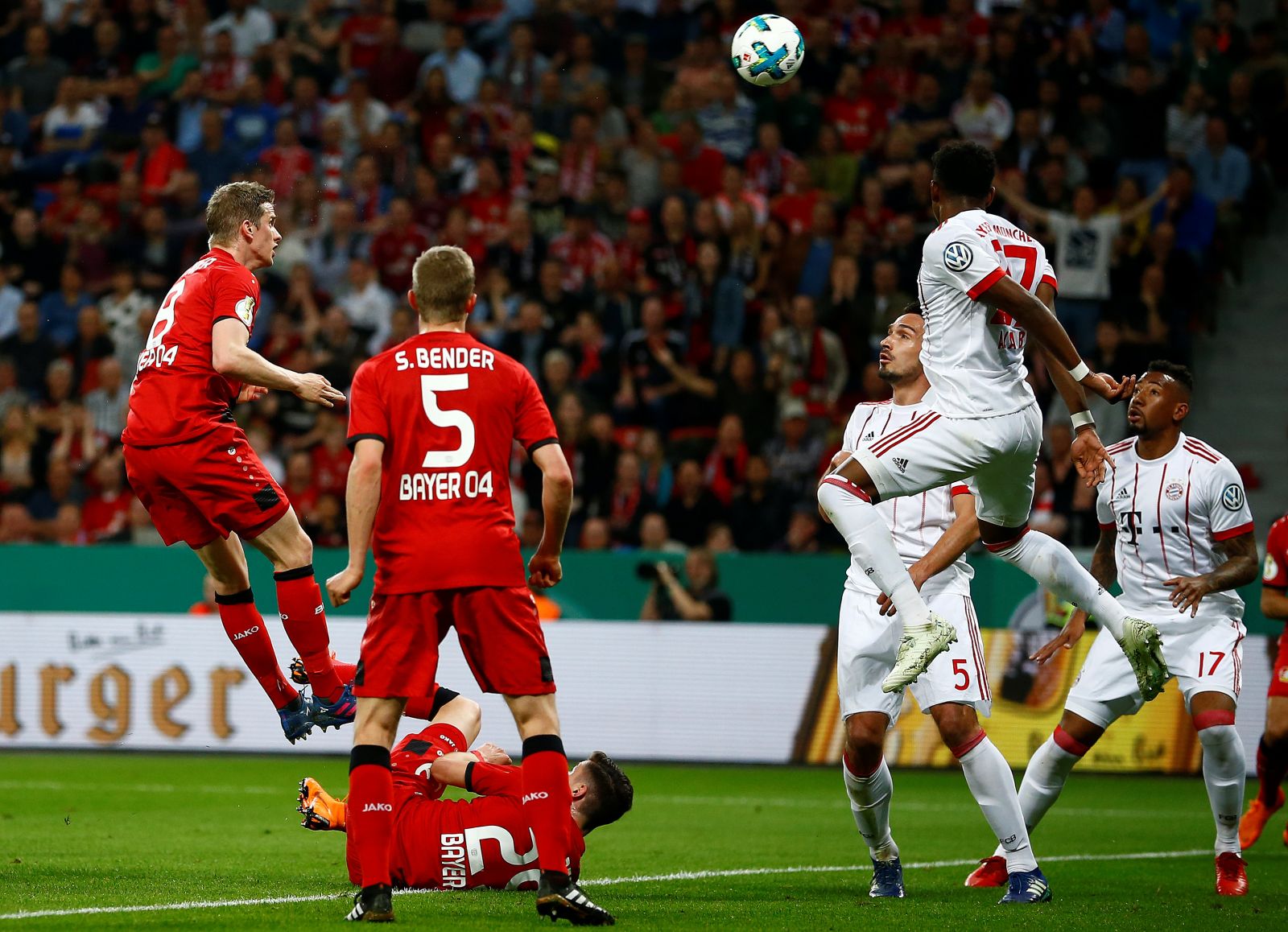 Sau khi bị dẫn 2-0, Leverkusen thi đấu nỗ lực hơn và đến phút 16, hi vọng lóe lên với đội chủ nhà khi tiền vệ Lars Bender đánh đầu tung lưới thủ môn Sven Ulreich sau một tình huống lộn xộn trong vòng cấm, rút ngắn tỉ số xuống 1-2 cho Leverkusen.