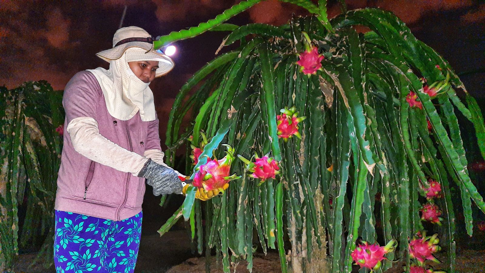 Khoảng 3 giờ sáng, ngôi nhà nhỏ của bà Trần Thị Thu (60 tuổi), ngụ ấp 5, xã Hiệp Thạnh, trở nên ồn ào, náo nhiệt khi nhóm người cắt trái vào đến. Hôm ấy, gia đình bà Thu có khoảng 300 gốc thanh long đến ngày thu hoạch. Trước hiên nhà, bà Thu vừa loay hoay sắp xếp lại xấp giấy báo cũ cùng những chiếc cần xé được chuẩn bị sẵn, chờ xếp trái vào để tiện cho việc vận chuyển ra vựa, vừa nói: “Không riêng gia đình tôi mà đa số người trồng thanh long đều chọn cắt trái vào giờ này vì trời mát, đỡ vất vả cho người cắt. Thêm vào đó, nếu cắt trái vào ban ngày, không vận chuyển kịp vào nhà, trái sẽ dễ bị héo, ảnh hưởng đến chất lượng, giá sẽ thấp hơn so với bình thường”.