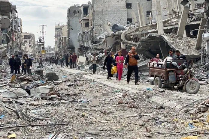 Gaza trong đóng đổ nát vì chiến tranh với Israel. Ảnh: nationofchange