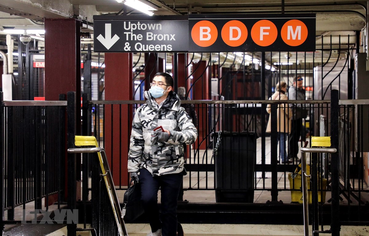 Người dân đeo khẩu trang phòng dịch COVID-19 tại ga tàu điện ngầm ở Manhattan thuộc New York, Mỹ ngày 05/3/2020. (Ảnh: THX/TTXVN)
