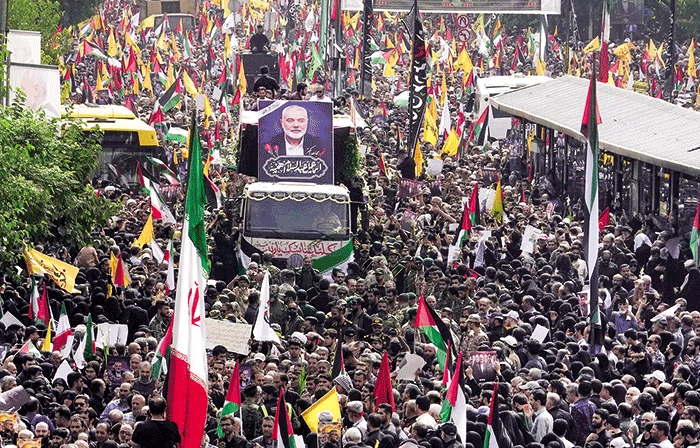 Người dân Iran xuống đường đưa tang thủ lĩnh Hamas Ismail Haniyeh tại Tehran ngày 1-8. Ảnh: AP