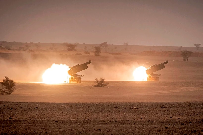 Hệ thống tên lửa pháo binh cơ động cao (HIMARS) của Mỹ khai hỏa trong một cuộc tập trận. (Ảnh: AFP/TTXVN)
