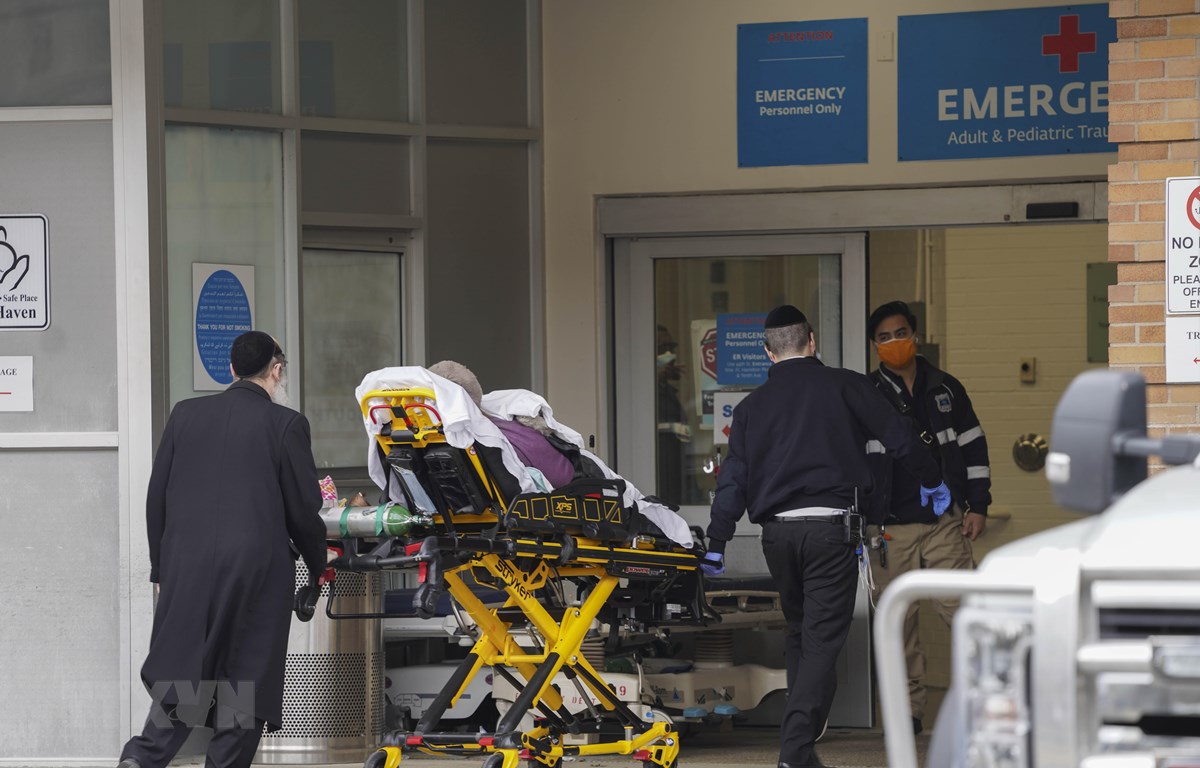 Nhân viên y tế chuyển bệnh nhân mắc COVID-19 vào một bệnh viện ở New York, Mỹ. (Ảnh: THX/TTXVN)