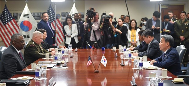 Theo phóng viên TTXVN tại Mỹ, ngày 29/7, Bộ trưởng Quốc phòng nước này Lloyd Austin và người đồng cấp Hàn Quốc Lee Jong-sup đang ở thăm Washington đã nhất trí mở rộng các cuộc diễn tập quân sự chung trong thời gian tới, đồng thời sớm tái khởi động đối thoại chiến lược về răn đe mở rộng.