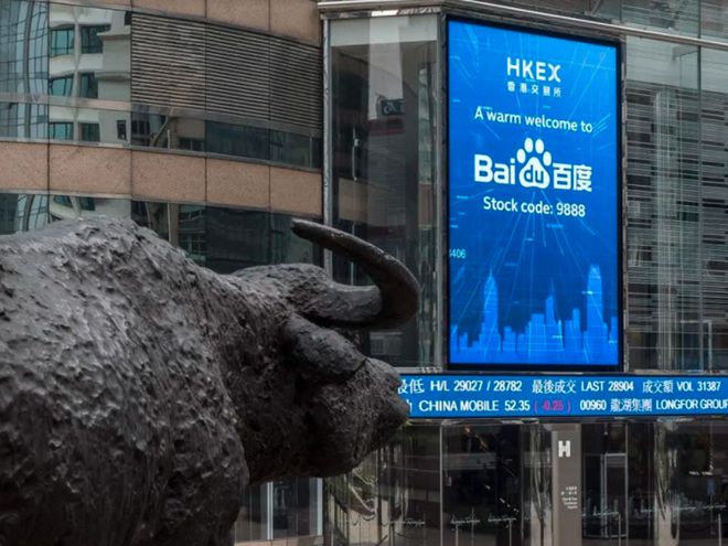 Baidu là một trong số các công ty công nghệ Trung Quốc niêm yết thứ cấp tại Hồng Kông trong thời gian gần đây. Ảnh: BLOOMBERG