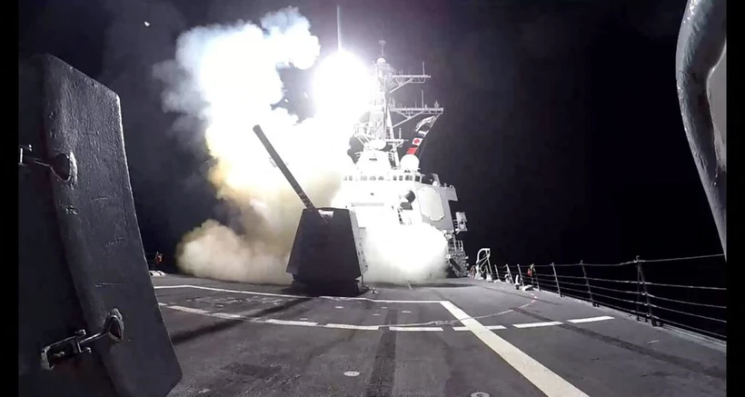 Tên lửa tấn công mặt đất Tomahawk (TLAM) được phóng từ tàu khu trục của Hải quân Mỹ USS Gravely nhằm vào các mục tiêu quân sự của Houthi ở Yemen, ngày 3/3. (Nguồn: Reuters)