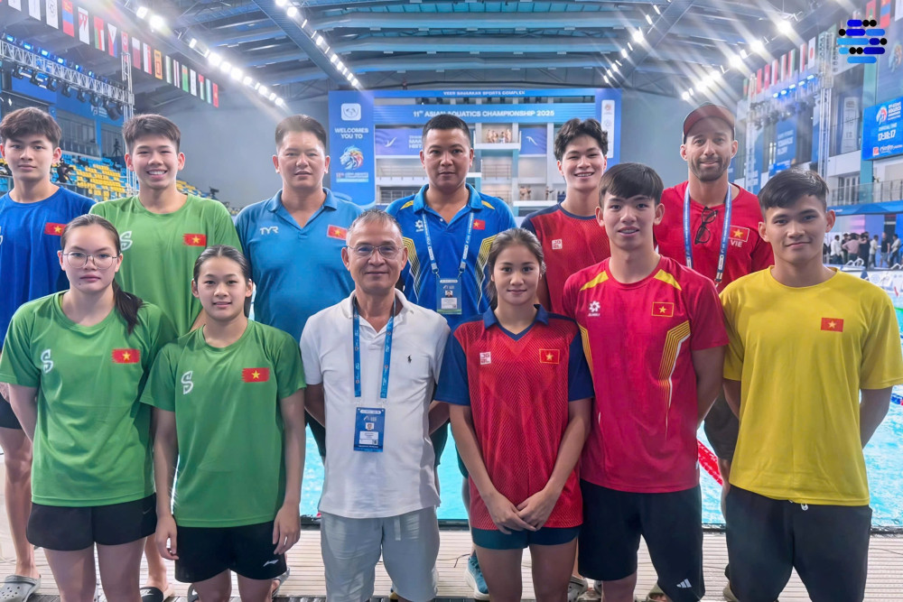 Mỹ Tiên cùng đội tuyển bơi Việt Nam thi đấu xuất sắc tại giải Vô địch các môn thể thao dưới nước châu Á 2025