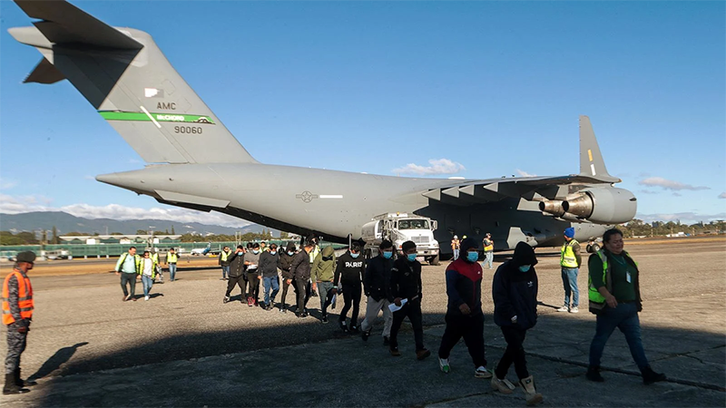 Máy bay Mỹ chở người nhập cư bị trục xuất về Guatemala. Ảnh: AFP