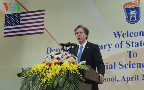 Thứ trưởng Ngoại giao Mỹ Antony Blinken phát biểu trước các sinh viênĐại học Khoa học Xã hội và Nhân văn.