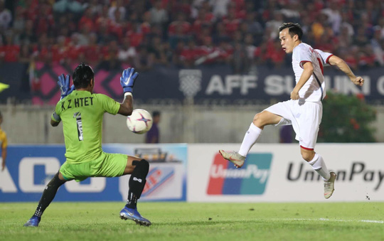 Phút 77, Văn Toàn đưa bóng vào lưới Myanmar nhưng bàn thắng không được công nhận do lỗi việt vị.