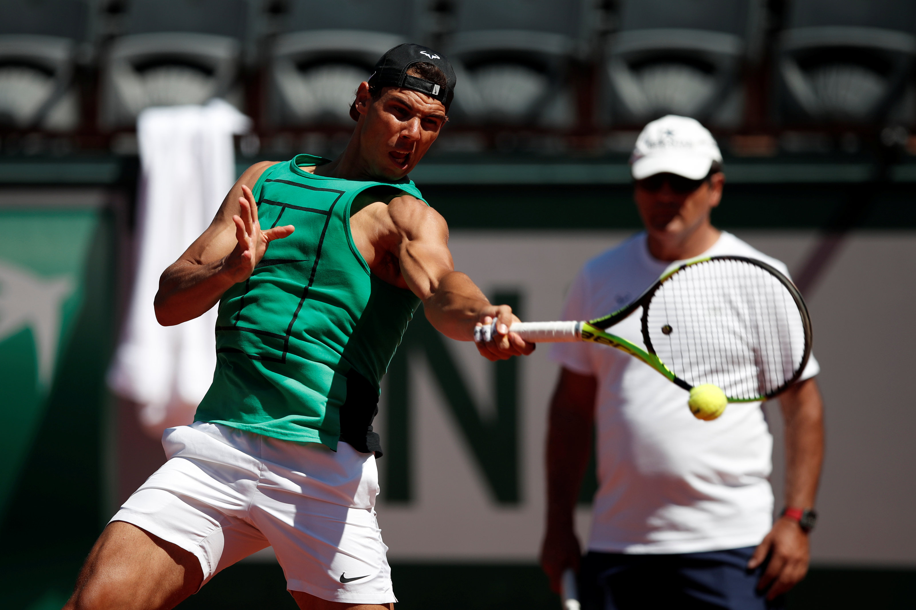 Nadal trên sân tập chuẩn bị cho Giải Pháp mở rộng 2017. Ảnh: REUTERS